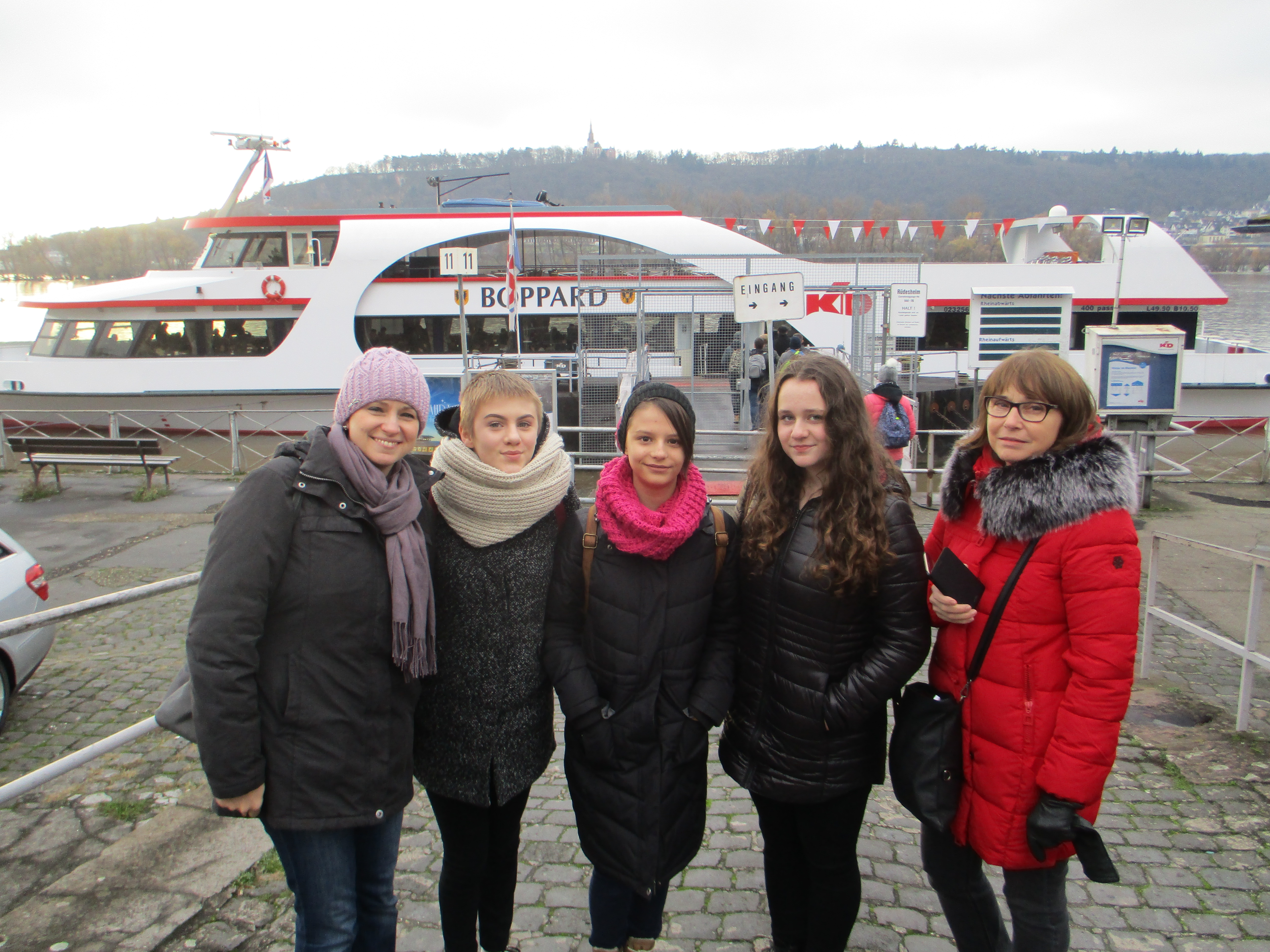Vo štvrtok sme sa učili, ale v piatok nás čakal krásny výlet. Dve hodiny sme sa plavili po rieke Rýn. Z lode sme mali možnosť vidieť množstvo hradov, zámočkov a iných kultúrnych pamiatok. Po plavbe sme sa lanovkou vyviezli ku soche Germánií, ktorá je otočená smerom k Francúzsku. Bola postavená, aby v minulosti ukázala, že francúzsky národ sa už ďalej do Nemecka nedostane.