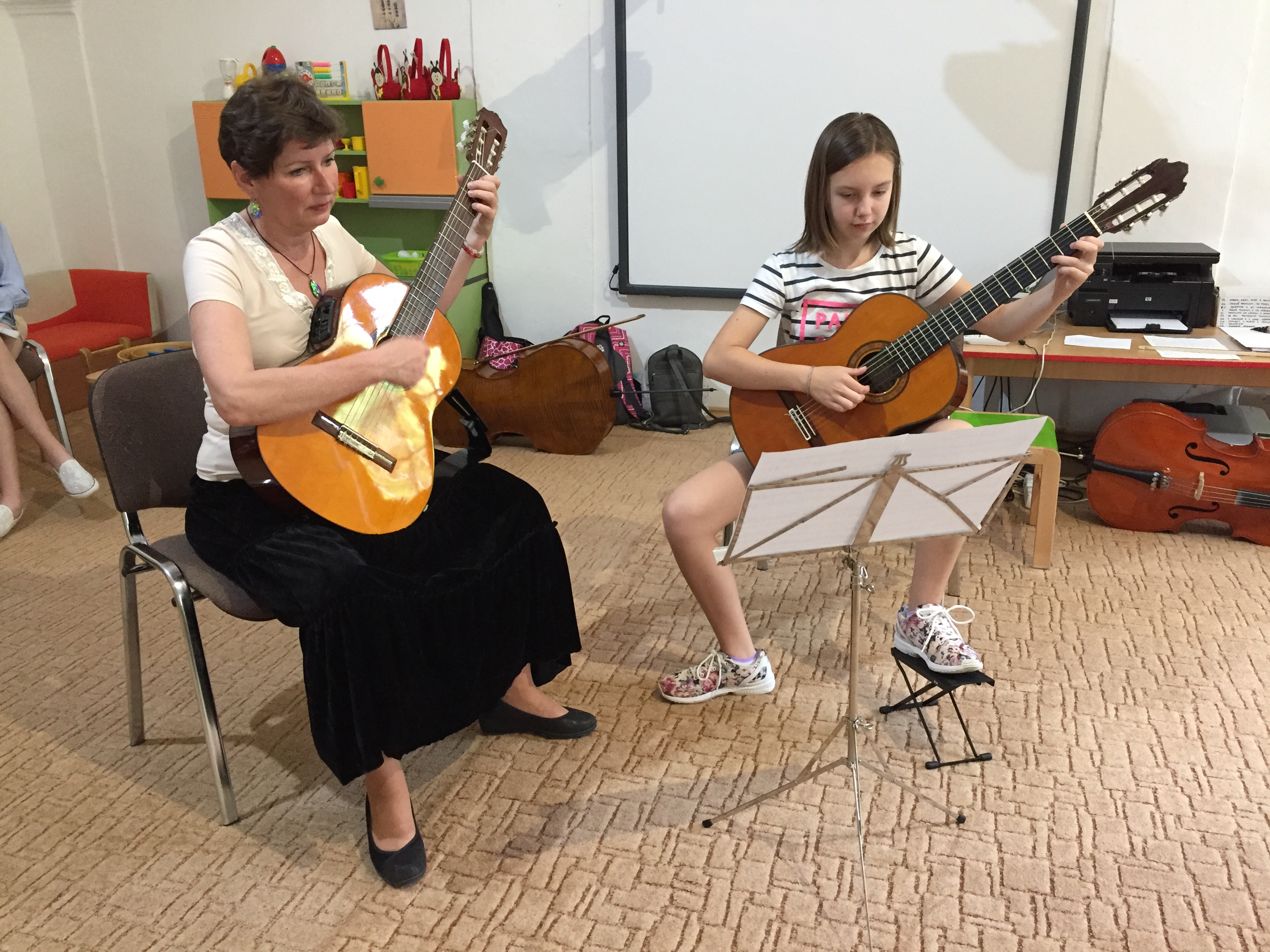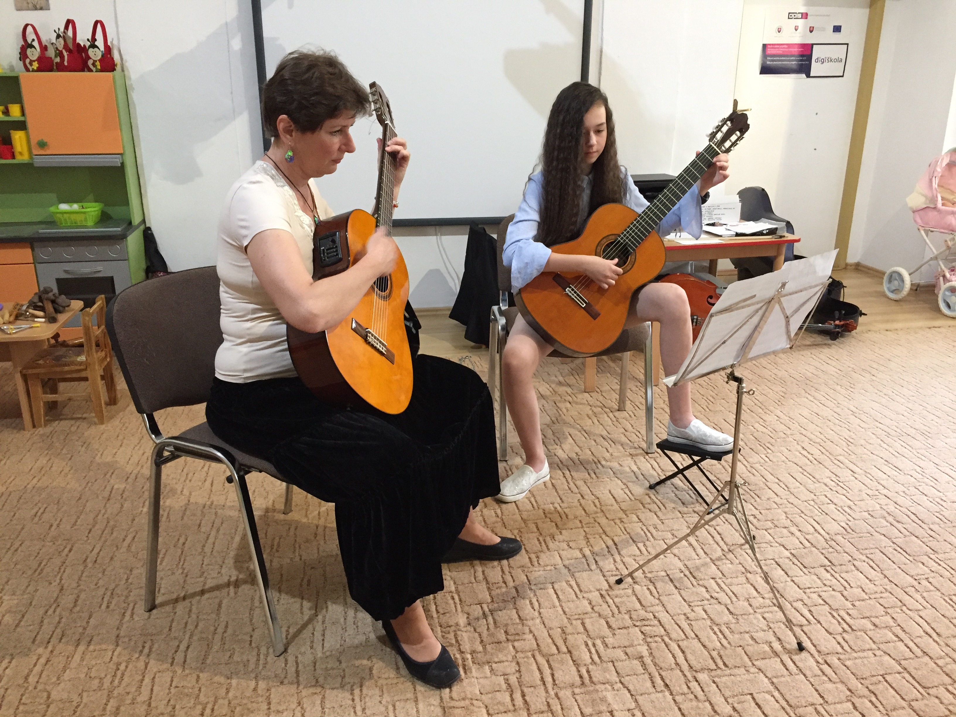 29.05.2018 nás navštívili kamaráti zo ZUŠ Bojnice s p. uč. Idkou Nikmonovou. Krásne melódie gitary a violončela nás vtiahli do sveta hudby. Ďakujeme za návštevu.
