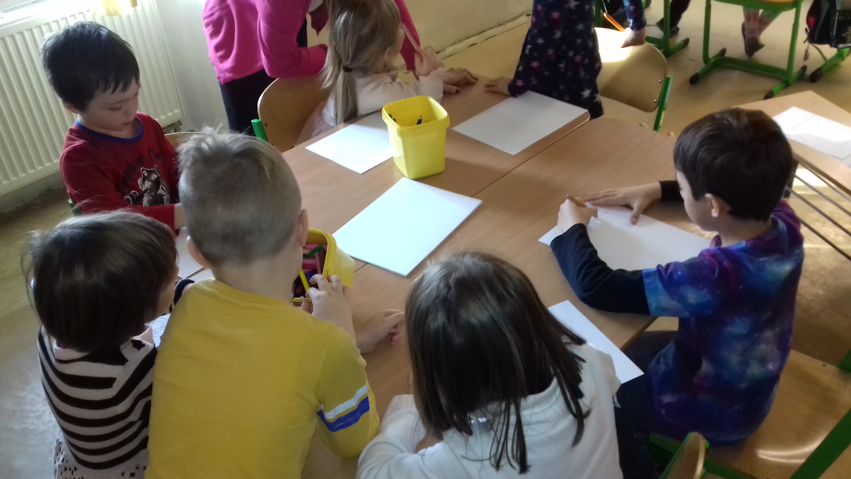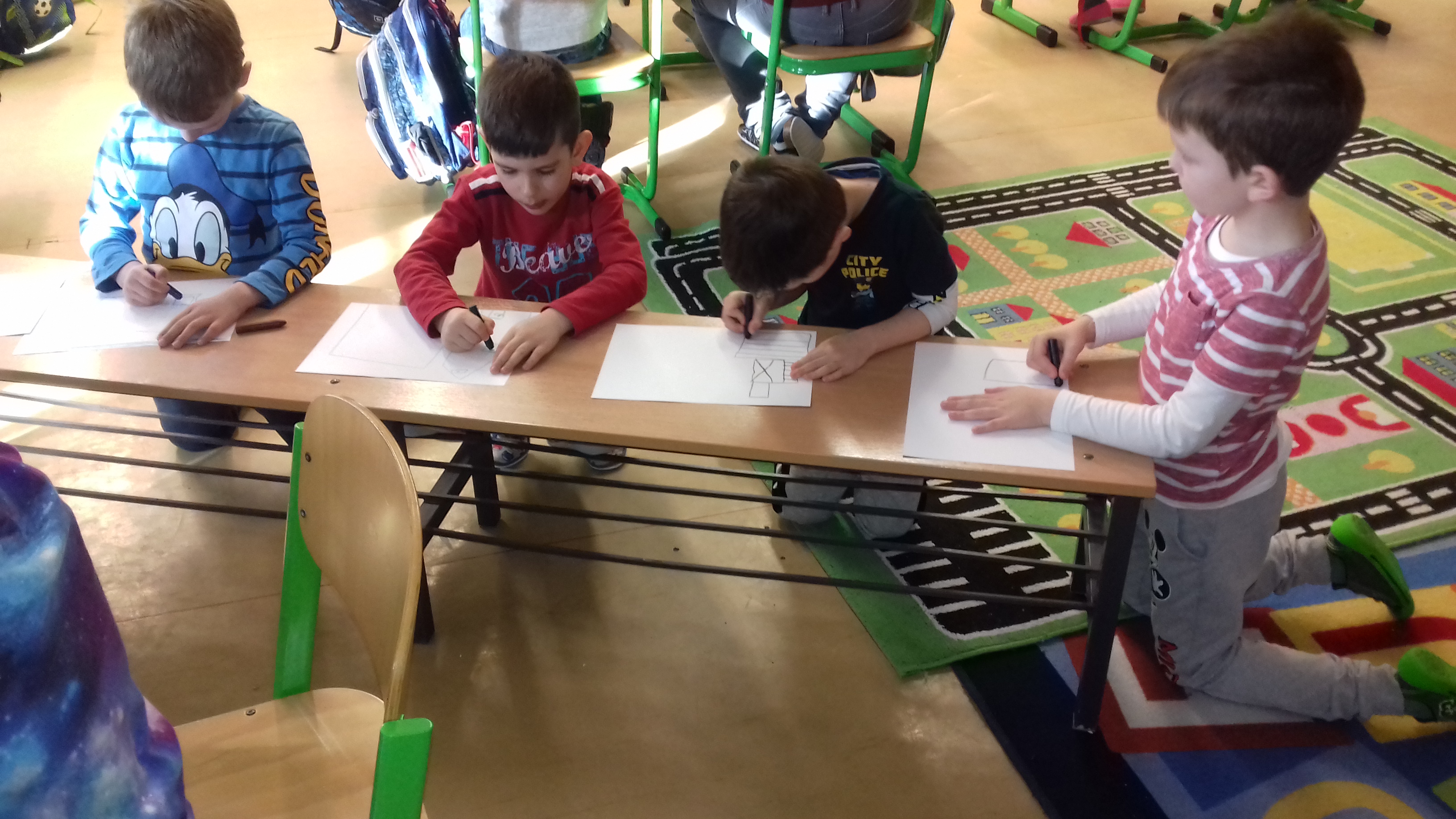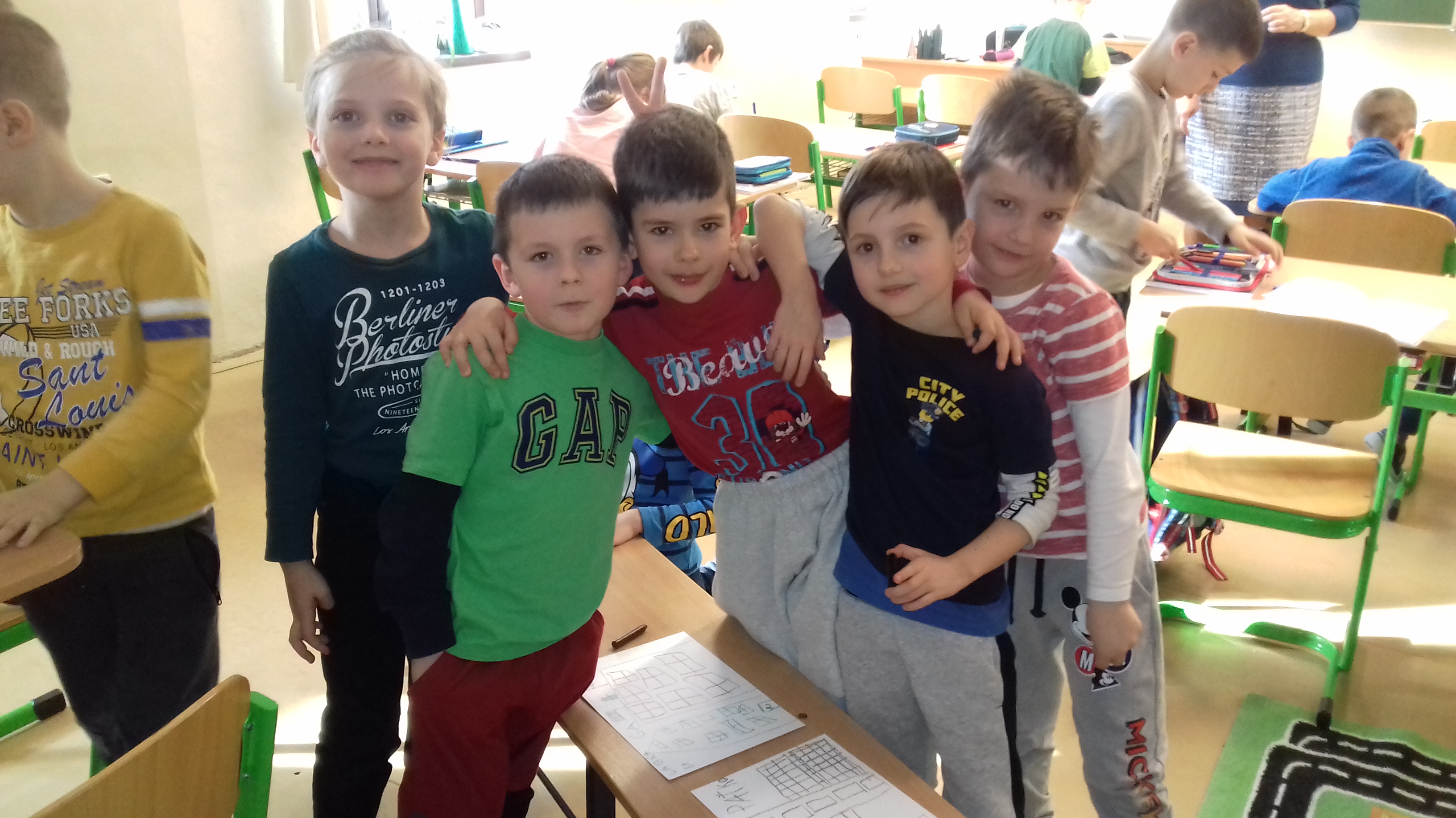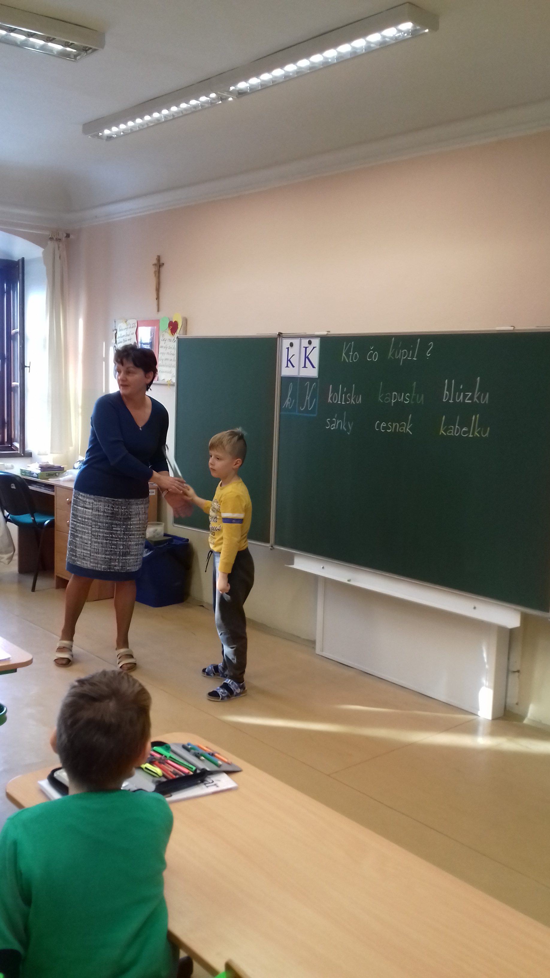 Predškoláci u prvákov Naši predškoláci navštívili prvákov na hodine slovenčiny. S radosťou sa zapojili do priebehu hodiny a išlo im to perfektne