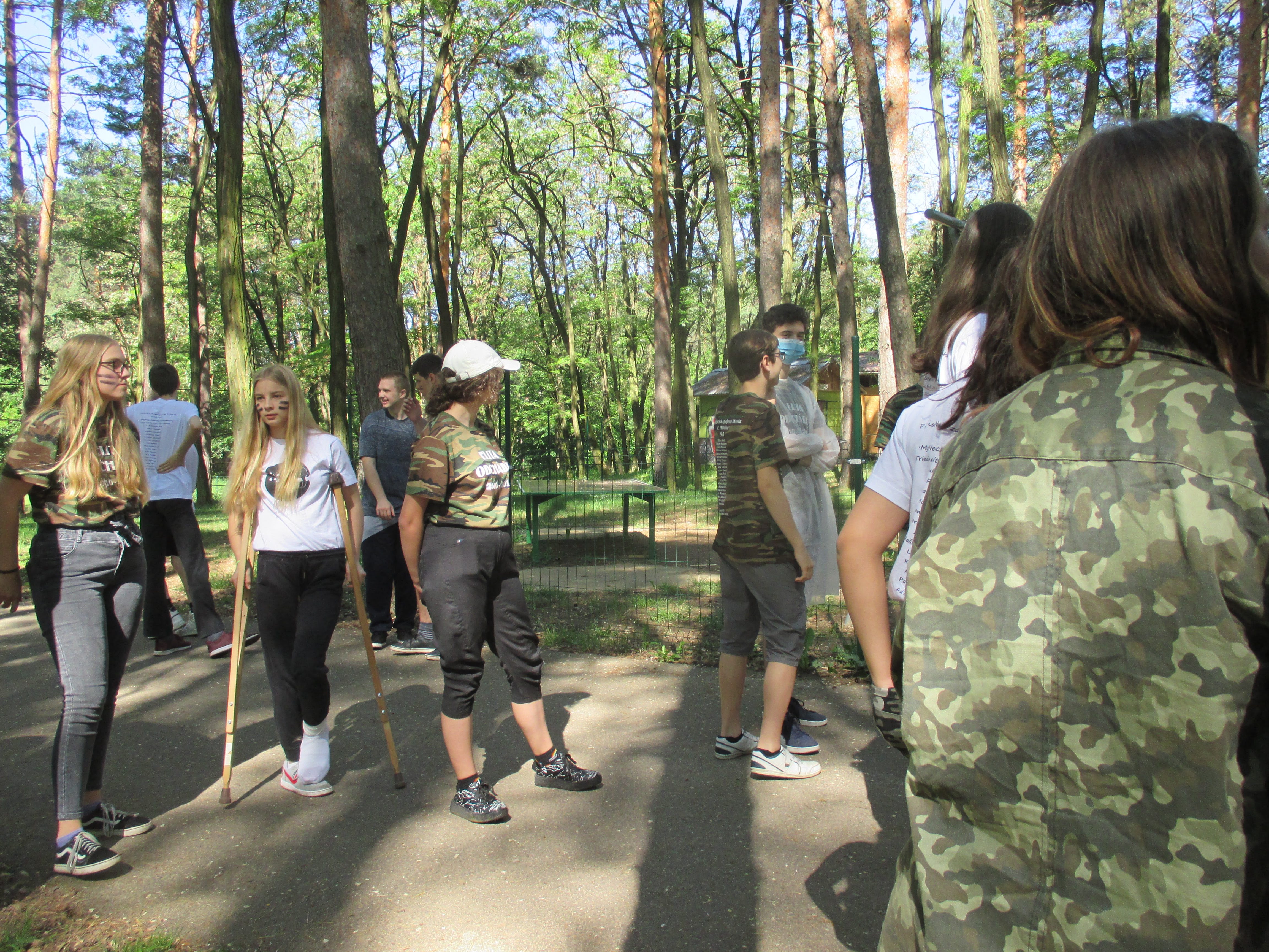 Po počiatočnom „vstupe do armády“, ktorý spočíval v pomaľovaní tváre začali žiaci v skupinách plniť rôzne úlohy na jednotlivých stanovištiach v priestoroch Lesného parku.