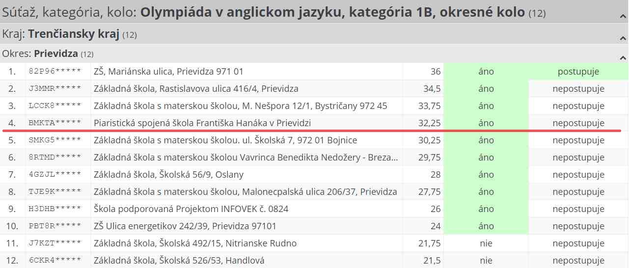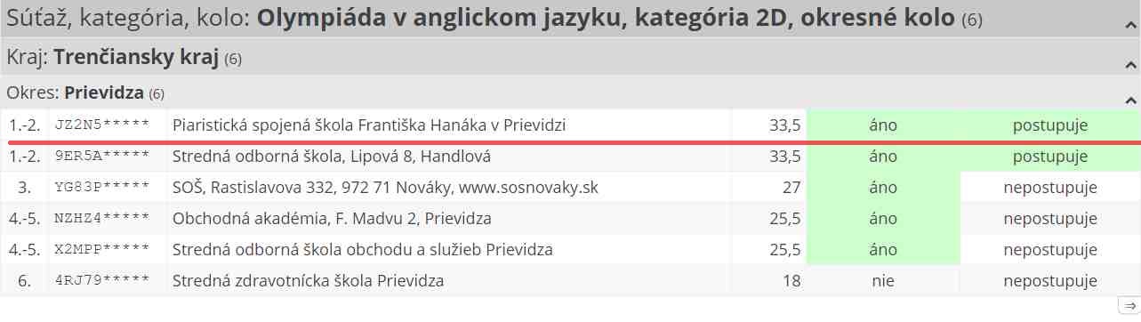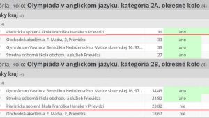 Piaristi úspešní v okresnom kole Olympiády v anglickom jazyku