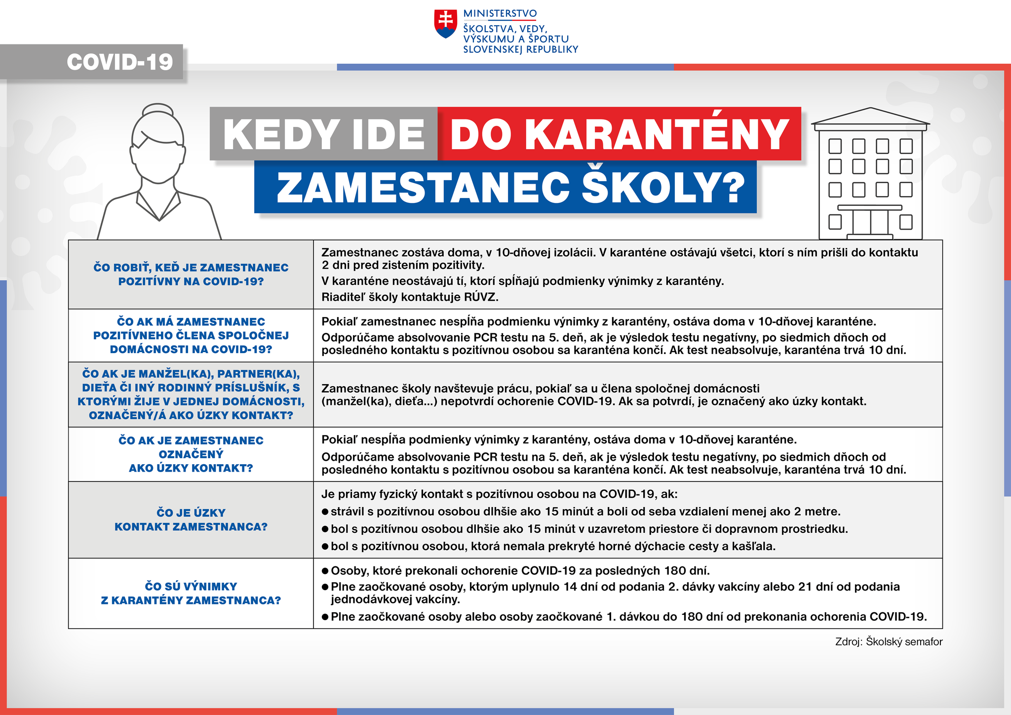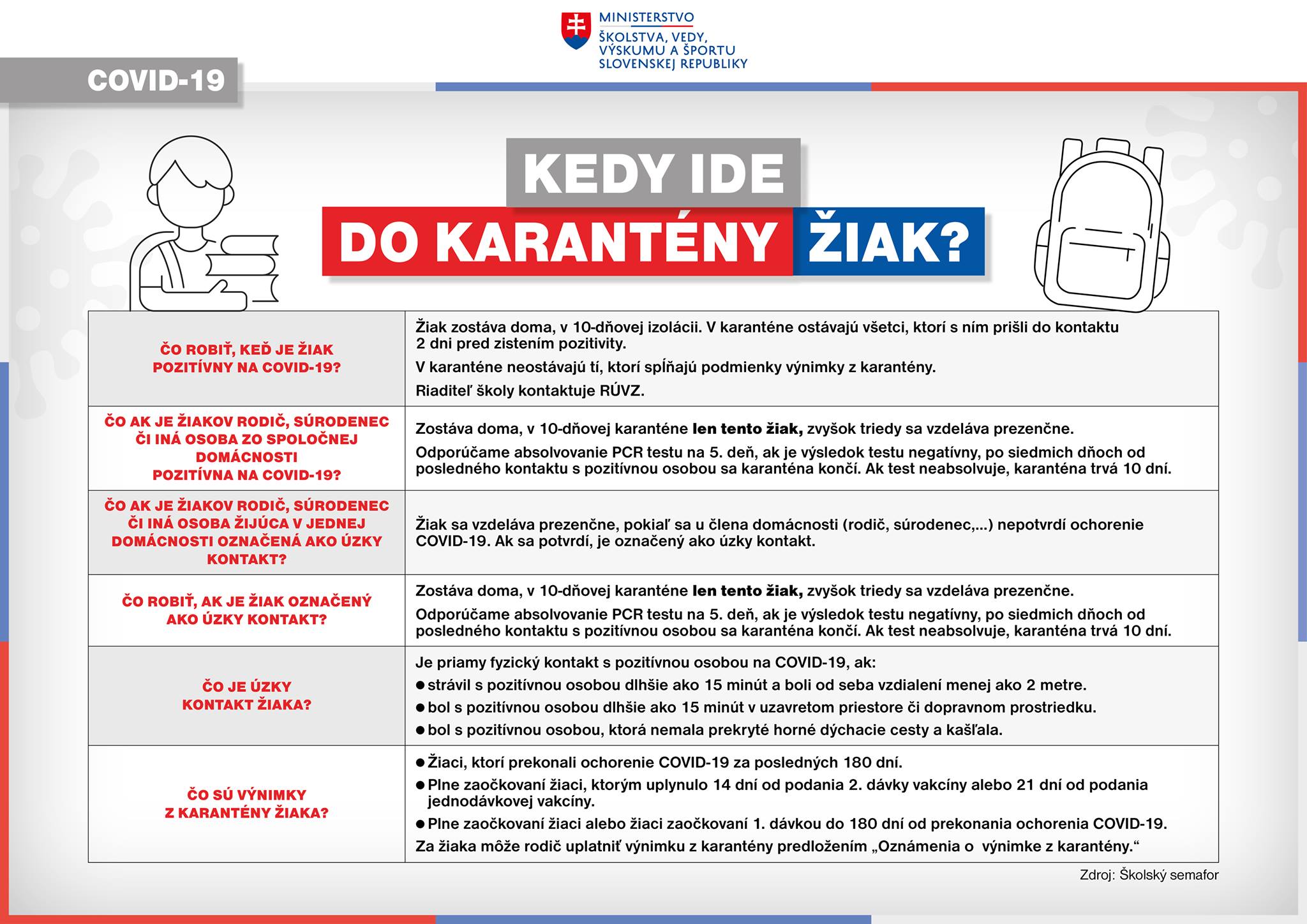 Od pondelka 13.9. je platná nová vyhláška ÚVZ, ktorá upravuje dĺžku karantény. Ministerstvo pripravilo prehľadné infografiky, ako aj odpovede na najčastejšie otázky.