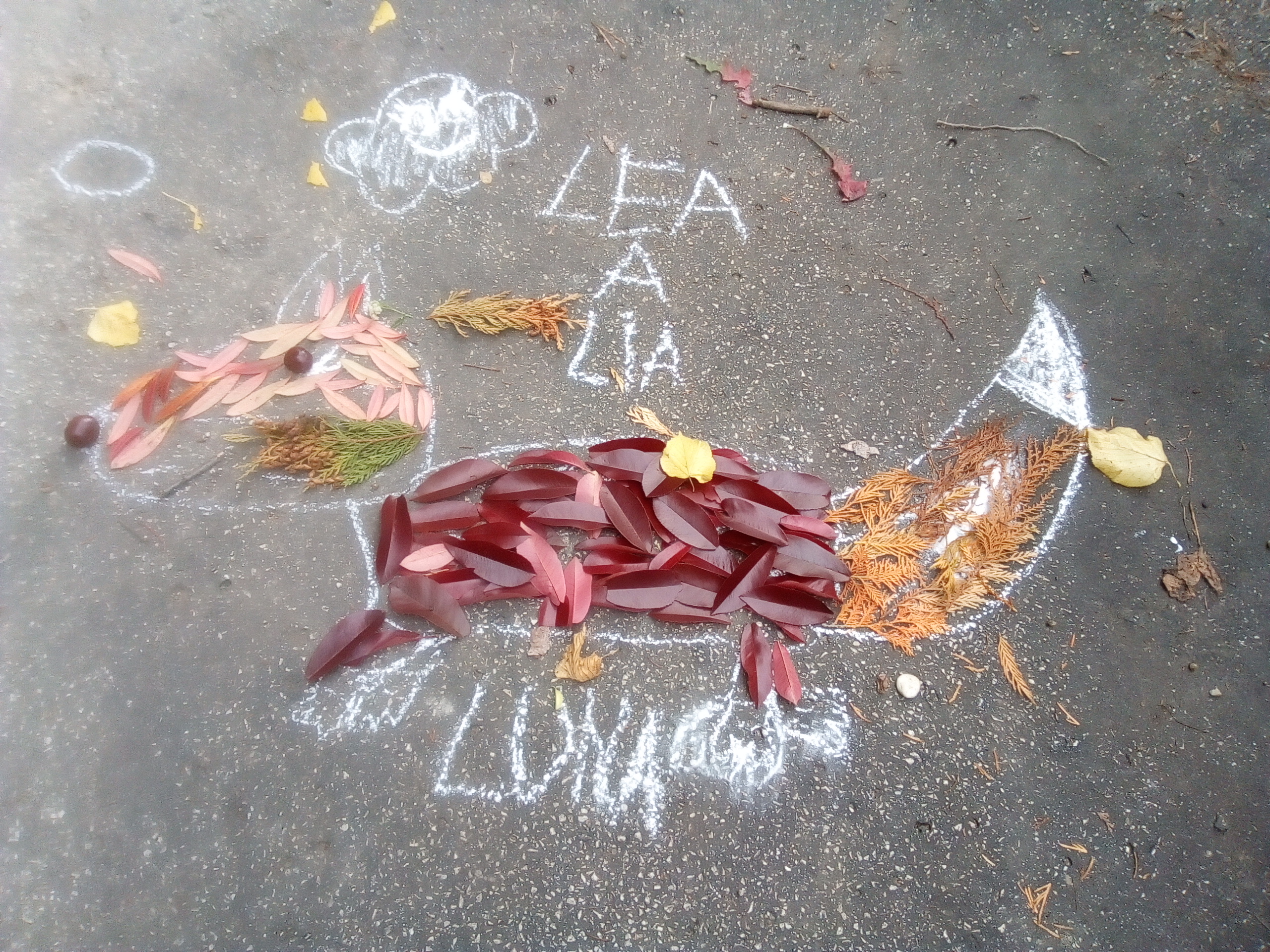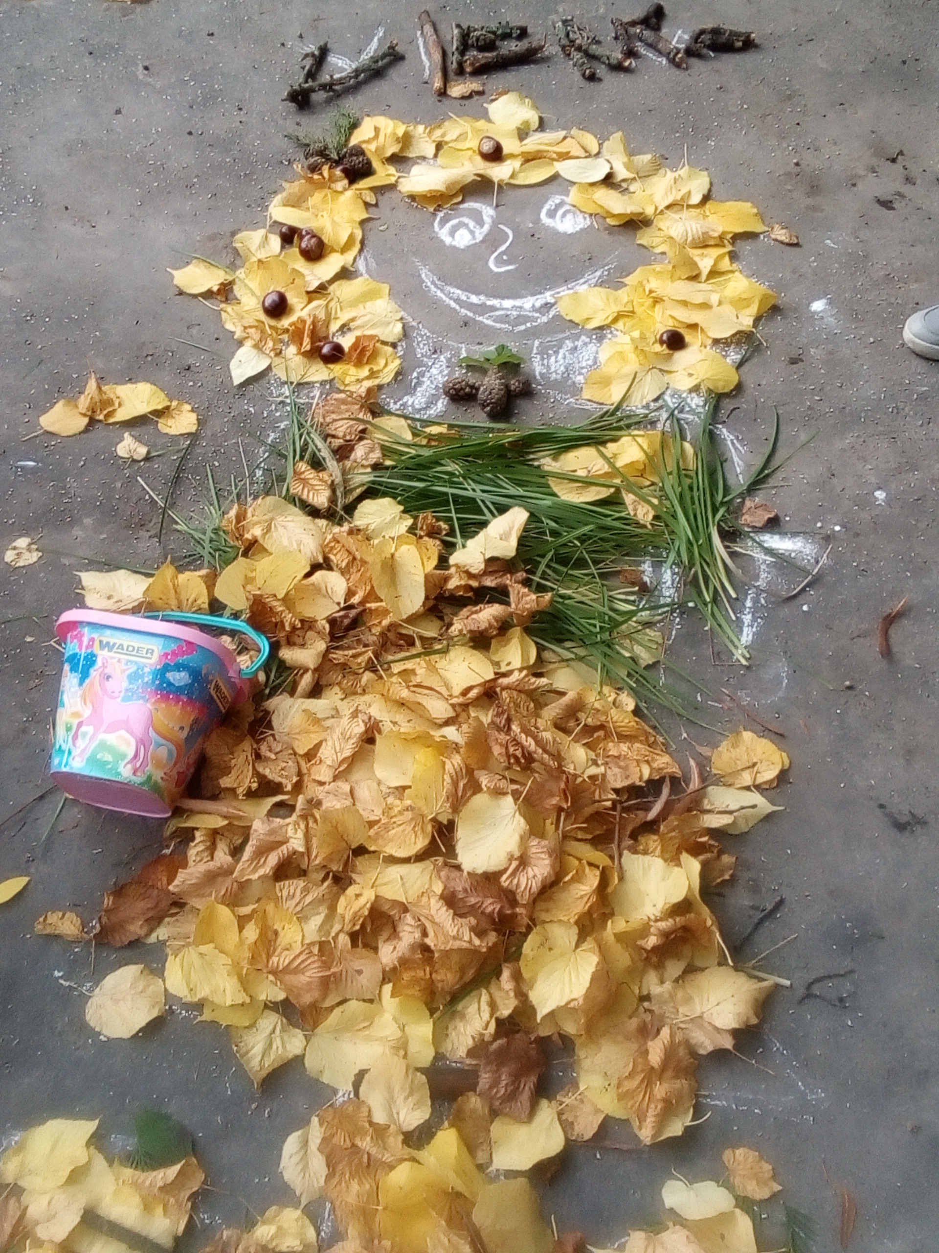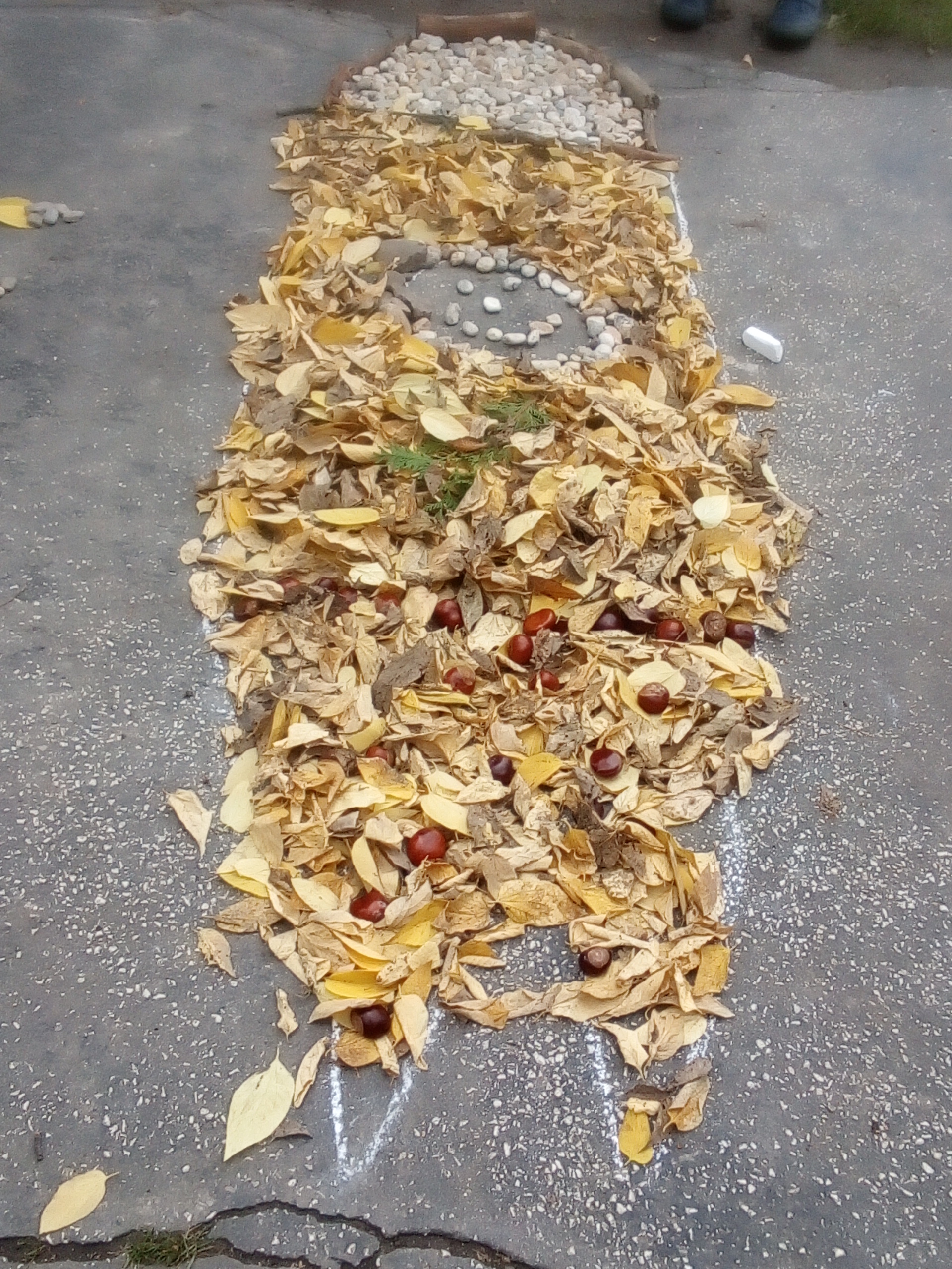 Návrat „babieho leta“ využili aj tento tok deti zo školského klubu na jesenné kúzlenie. Počas pobytu na školskom dvore vytvorili obrazy z opadaných listov a iných prírodnín. S nadšením sa pustili do práce a vytvorili: srdce, ježka, raketu, pani Jeseň a iné. Chcelo to len trošku fantázie a tej majú deti dosť. Koľko radosti nám priniesla farebná jeseň!