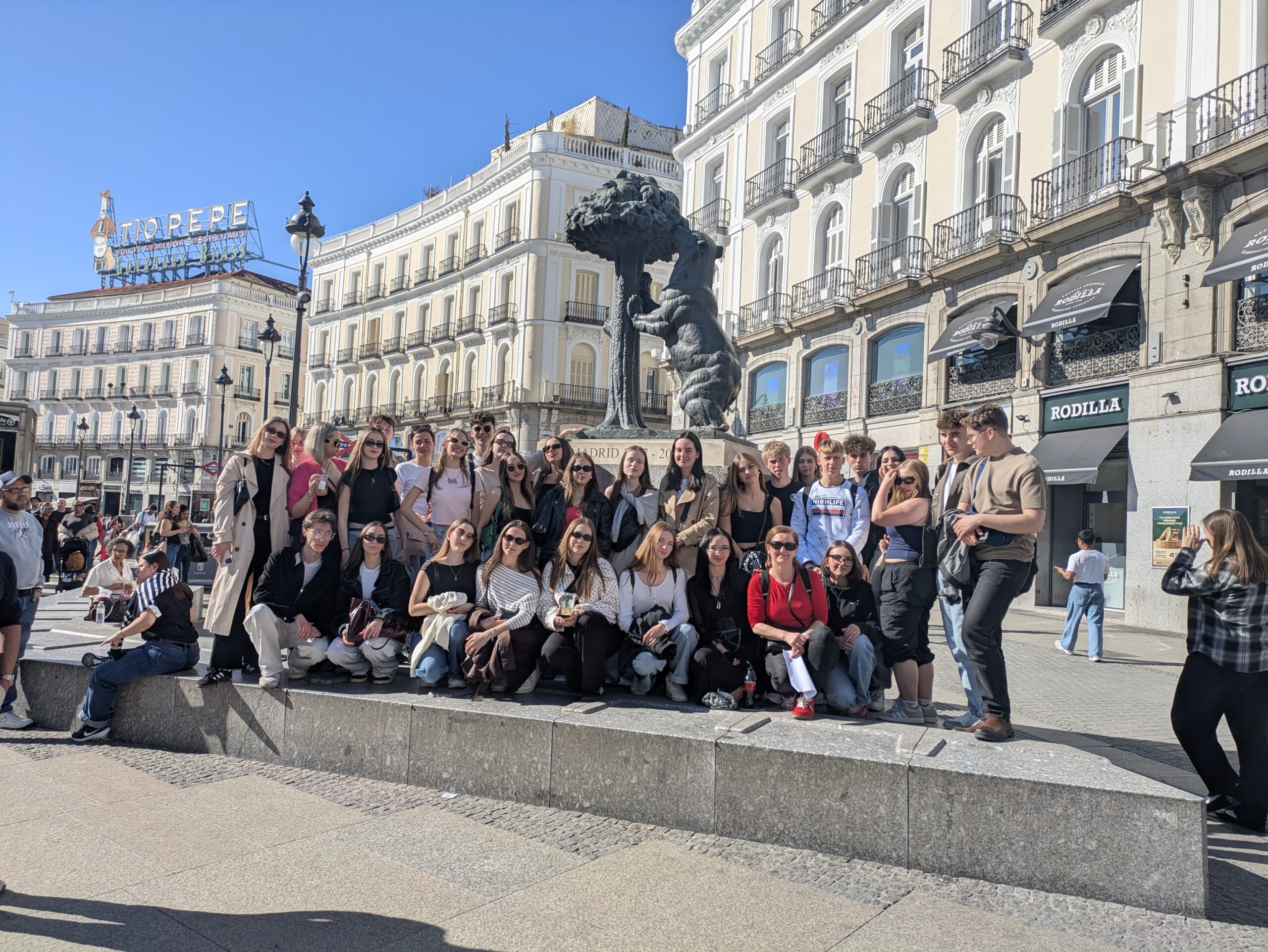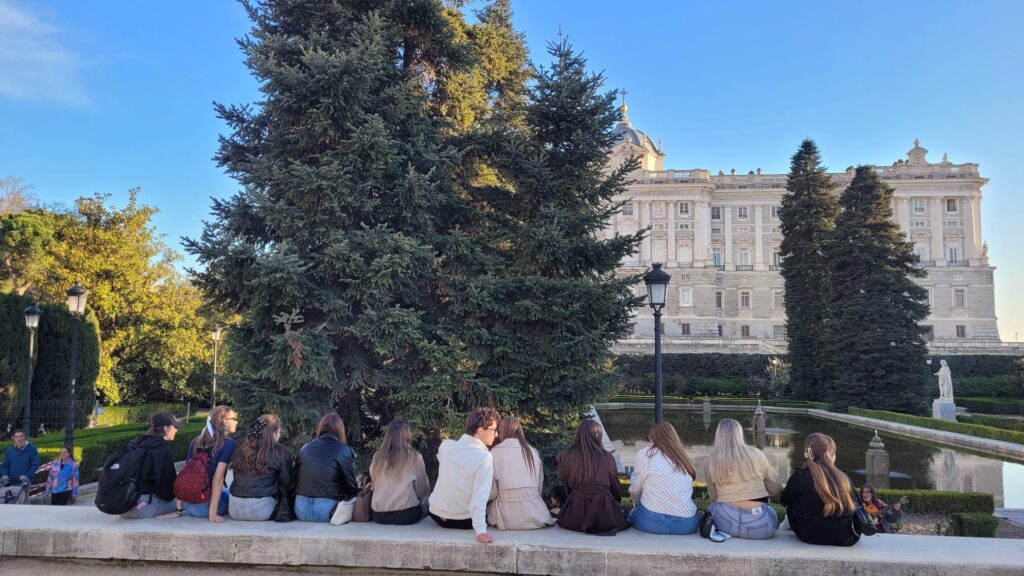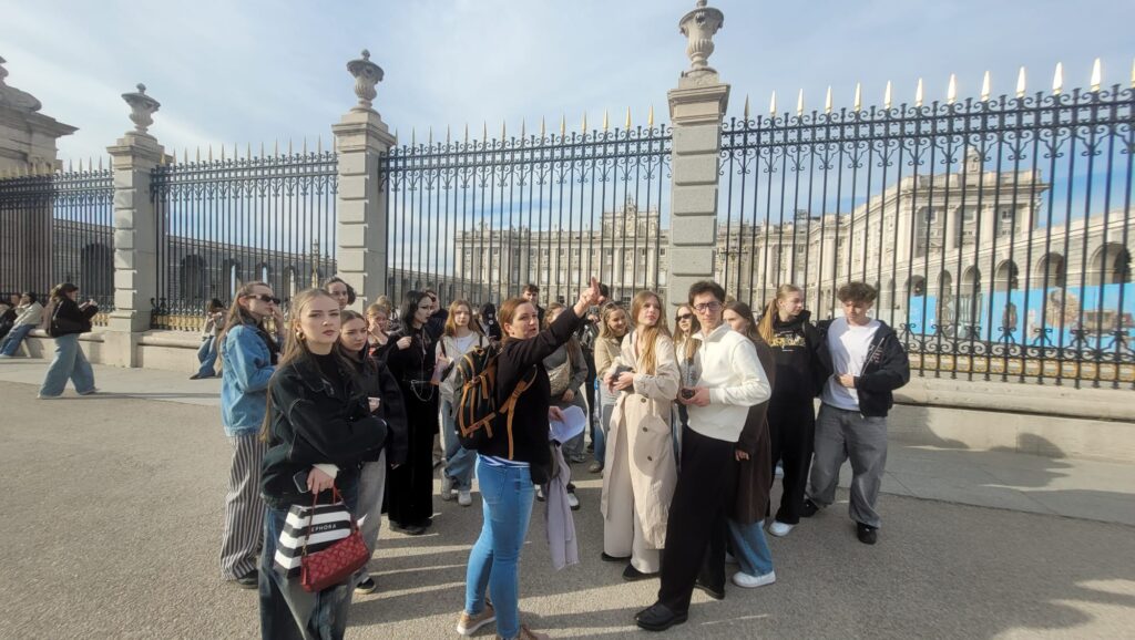V dňoch 17.3. až 20.3. sme navštívili hlavné mesto Španielska – očarujúci Madrid, ktorý nás svojou energiou, slnkom a atmosférou okamžite vtiahol do svojho tempa. Hneď prvý deň sme sa vydali do samotného srdca mesta – Puerta del Sol, kde to žije od rána do samého večera. Odtiaľ sme pokračovali na Plaza Mayor, kde sme nasávali atmosféru historického centra a nechýbala ani zastávka v Mercado de San Miguel. Raj pre všetkých milovníkov dobrého jedla. Ďalšie dni sme veľa behali, no ešte viac zažili. V múzeu Reina Sofía sme obdivovali umenie svetového formátu, predovšetkým slávny obraz Guernica od Pabla Picassa. Neskôr sme sa len tak túľali ulicami Madridu až k majestátnemu Palacio Real. Oddýchli sme si v záhradách Sabatini, pokračovali ku Catedral de la Almudena a deň zakončili na Plaza de España. Zlatý klinec? Západ slnka pri Templo de Debod – moment, na ktorý sa nezabúda. Nechýbal ani výlet mimo mesta. Asi hodinu od samotného Madridu sa nachádza malebné mestečko Segovia, ktorá nás očarila svojím impozantným akvaduktom, nádhernou katedrálou a rozprávkovým Alcázarom. Počas týchto dní sme si okrem nových miest odniesli aj nové priateľstvá a spomienky, ktoré zostanú s nami navždy. Posledný deň sme ešte stihli pozrieť býčiu arénu na Las Ventas, ikonickú Puerta de Alcalá a oddych v zelenom Retiro parku. Na záver sme sa vrátili do centra, aby sme sa s Madridom rozlúčili tak, ako sa patrí.